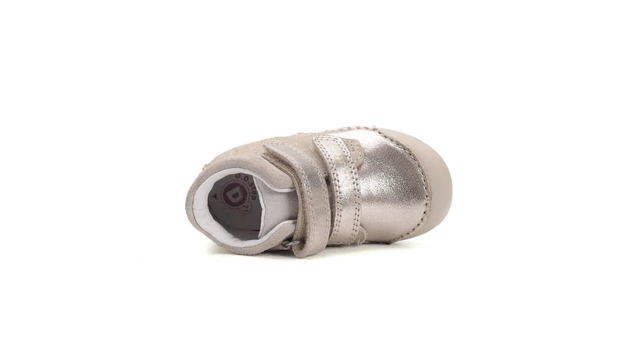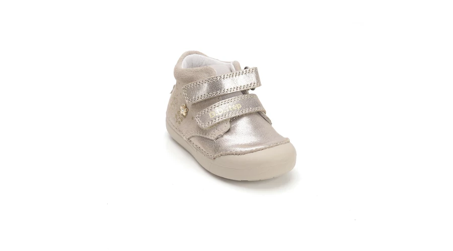 A D.D.Step első lépés cipő kifejezetten a kisgyermekek számára készült, akik most kezdik meg járásukat. Ezek a cipők úgy lettek kialakítva, hogy támogassák a természetes mozgást, miközben védik a gyermek lábát. Főbb jellemzők: • Anyag: Természetes bőrből készül, ami biztosítja a légáteresztést és a kényelmet. • Talp: Hajlékony, csúszásmentes gumitalp, amely segíti az egyensúly megtartását. • Kialakítás: Anatómiailag formázott, hogy megfelelő tartást adjon, de ne akadályozza a mozgást. • Záródás: Téppőzáras vagy fűzős változatban is elérhető, a könnyű fel- és levétel érdekében. • Belső rész: Puha, párnázott bélés gondoskodik a kényelemről. Előnyök: