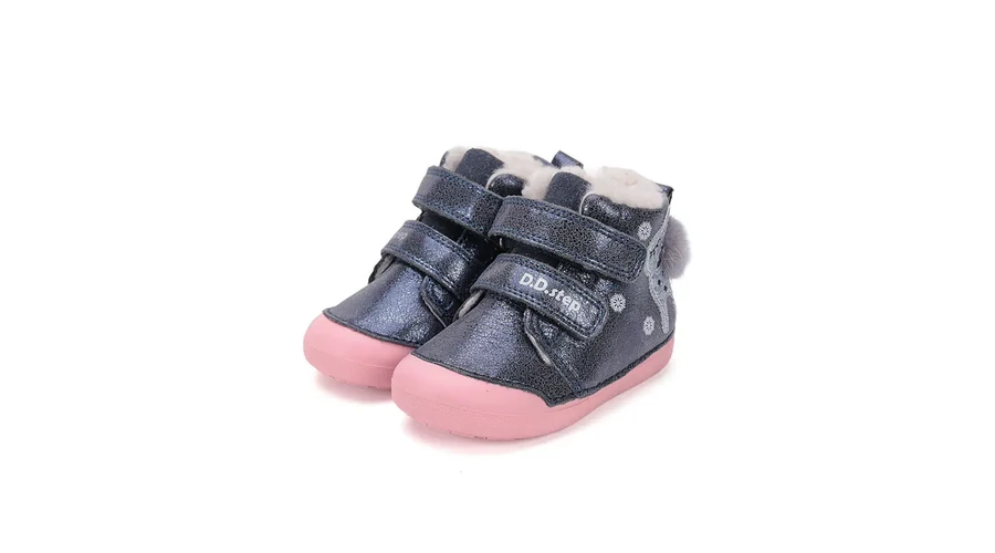 D.D.Step kék Kislány téli bélelt Vízlepergető Zárt cipő Őzikével #W066-52733A
