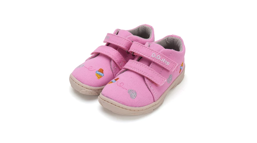 D.D.Step Kislány Barefoot Vászoncipő Rózsaszín, vidám muffin mintával #C077-51663C