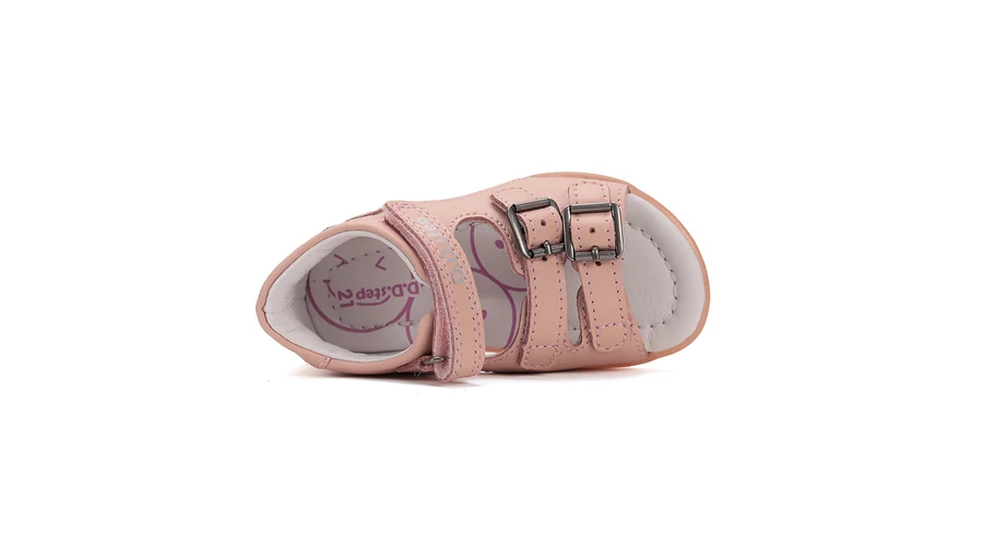 A DD Step szandál kényelmes kialakítással és rugalmas, csúszásmentes talppal biztosítja a biztonságos lépéseket, legyen szó a játszótérről, iskolai folyosóról vagy óvodai környezetről. A valódi bőr felsőrész biztosítja a szellőzést, így a lábak egész nap frissen maradnak, míg a tépőzáras pántok könnyedén állíthatóak, hogy mindig pontosan illeszkedjenek. A zárt sarok extra stabilitást ad a lépésekhez, miközben biztosítja a gyerekek lábának védelmét.