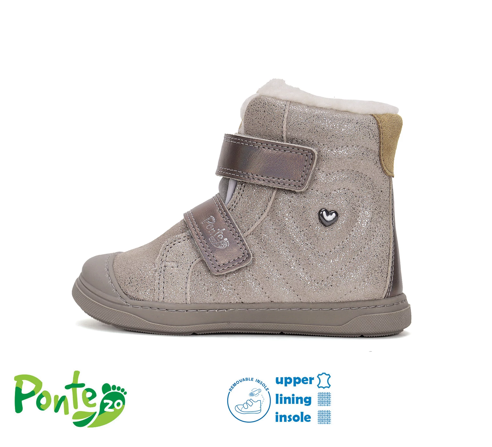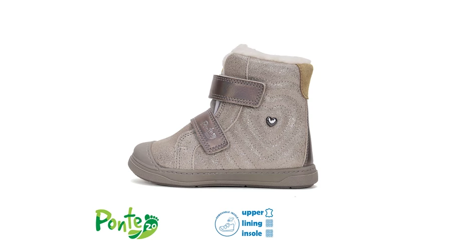 Ponte20 szürke Kislány Szupinált Téli bakancs - cipő szívecskével #DA07-5-2475A