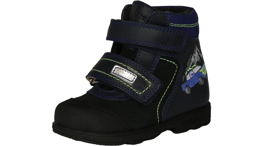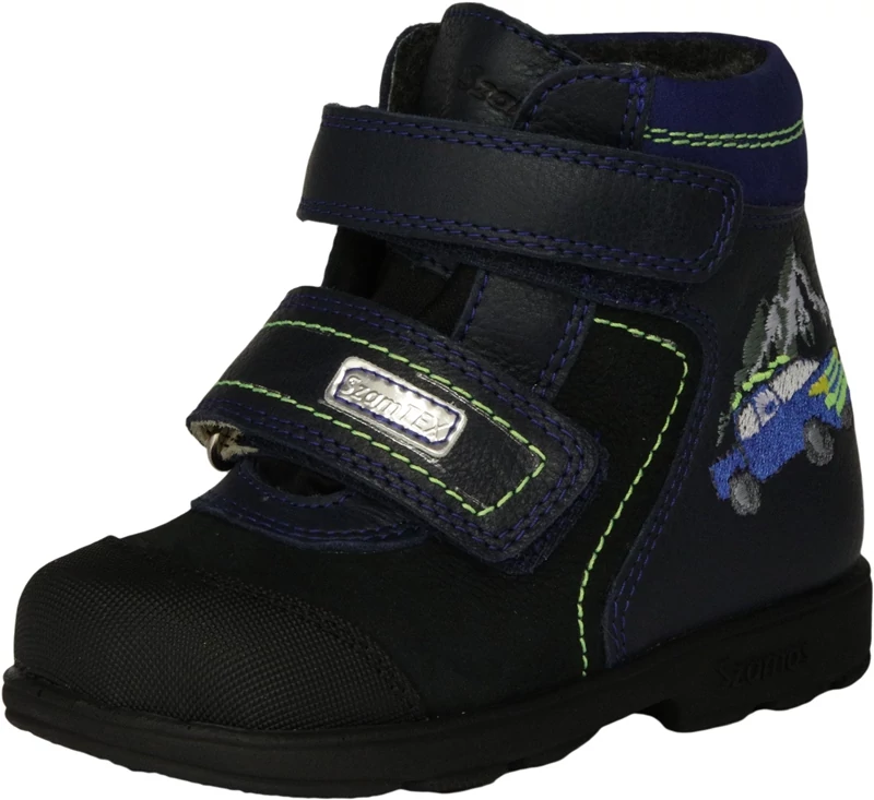 Szamos szupinált kék fiú téli, bélelt, TEX-es bakancs – egészséges tartás és vízálló védelem! rendőrautóval # 1883-17709
